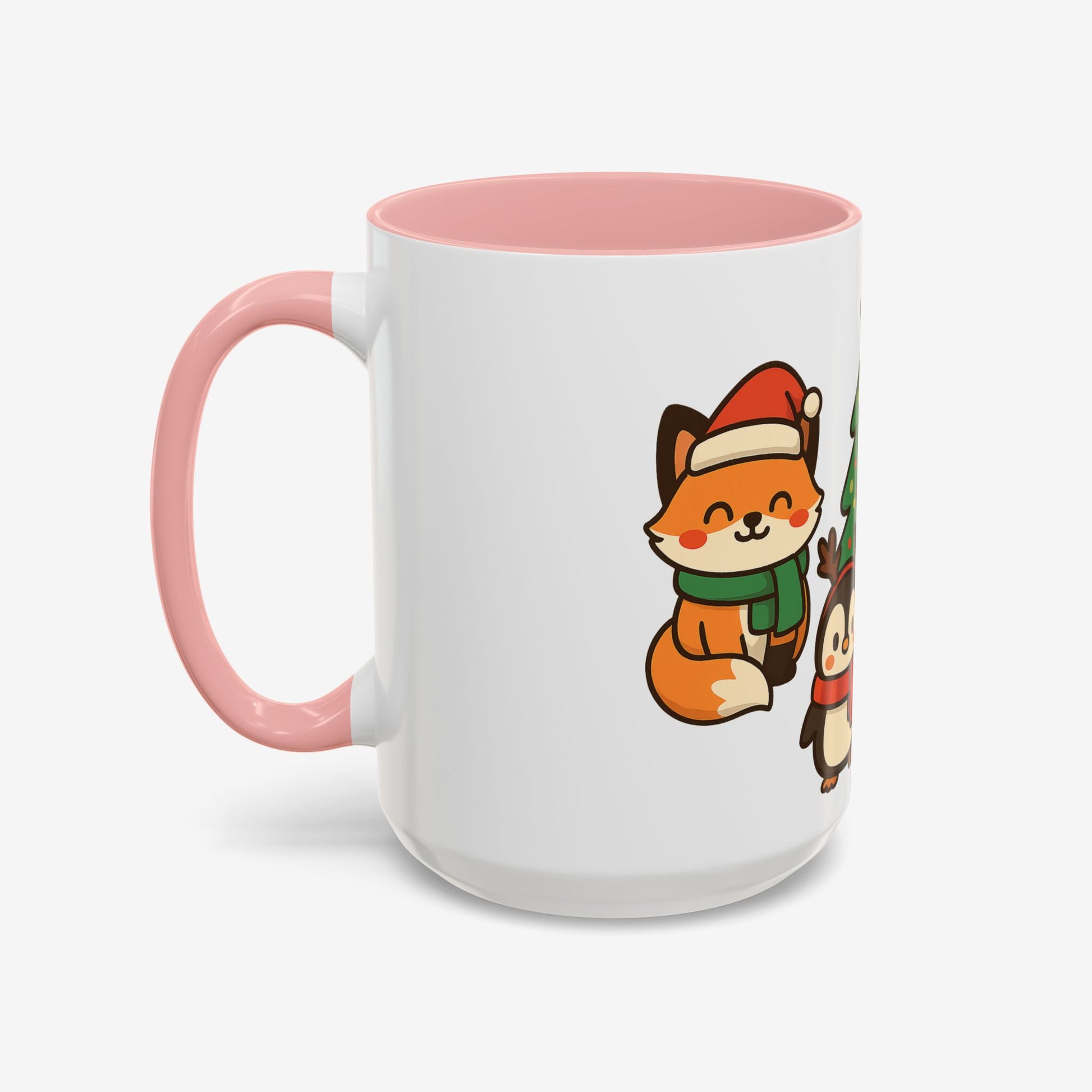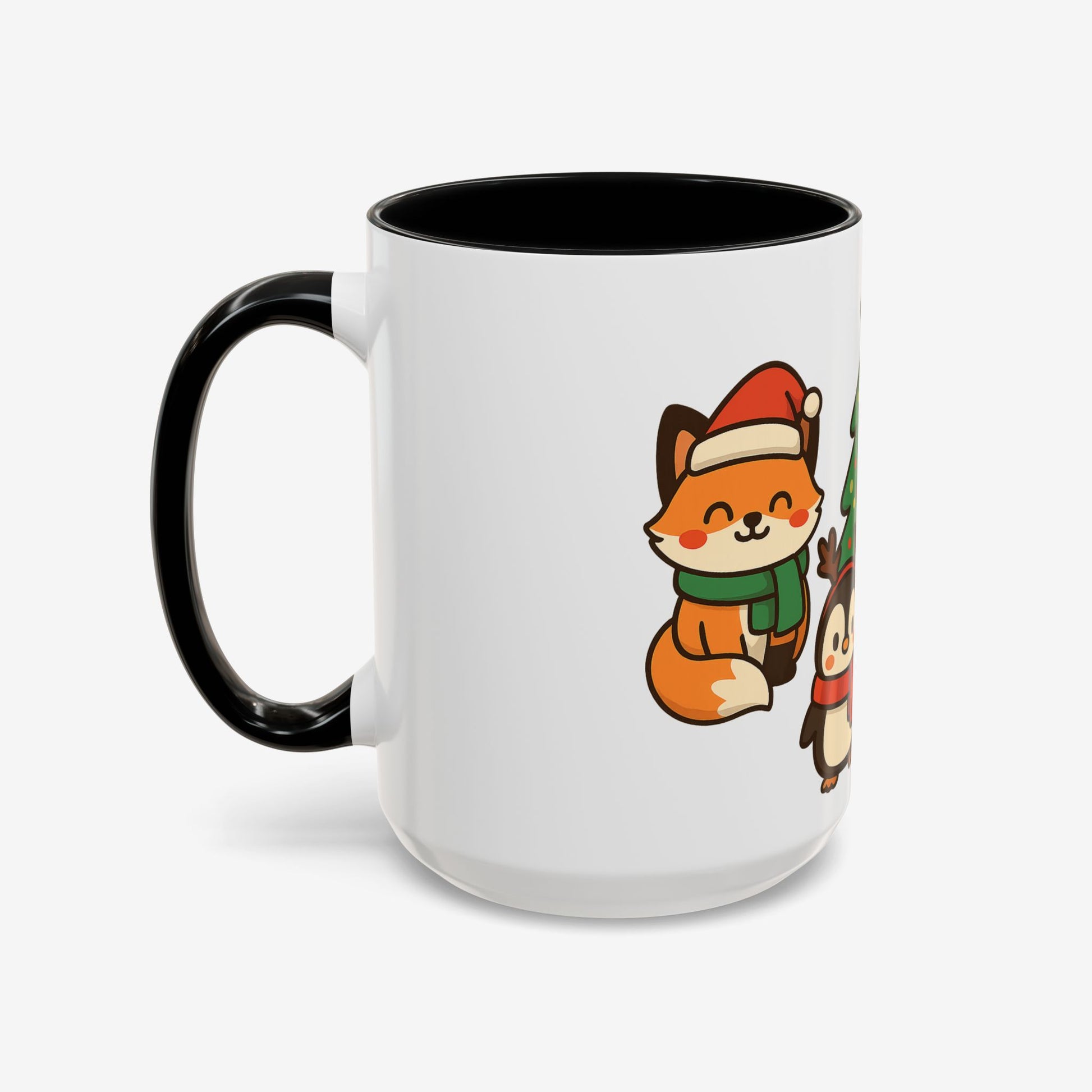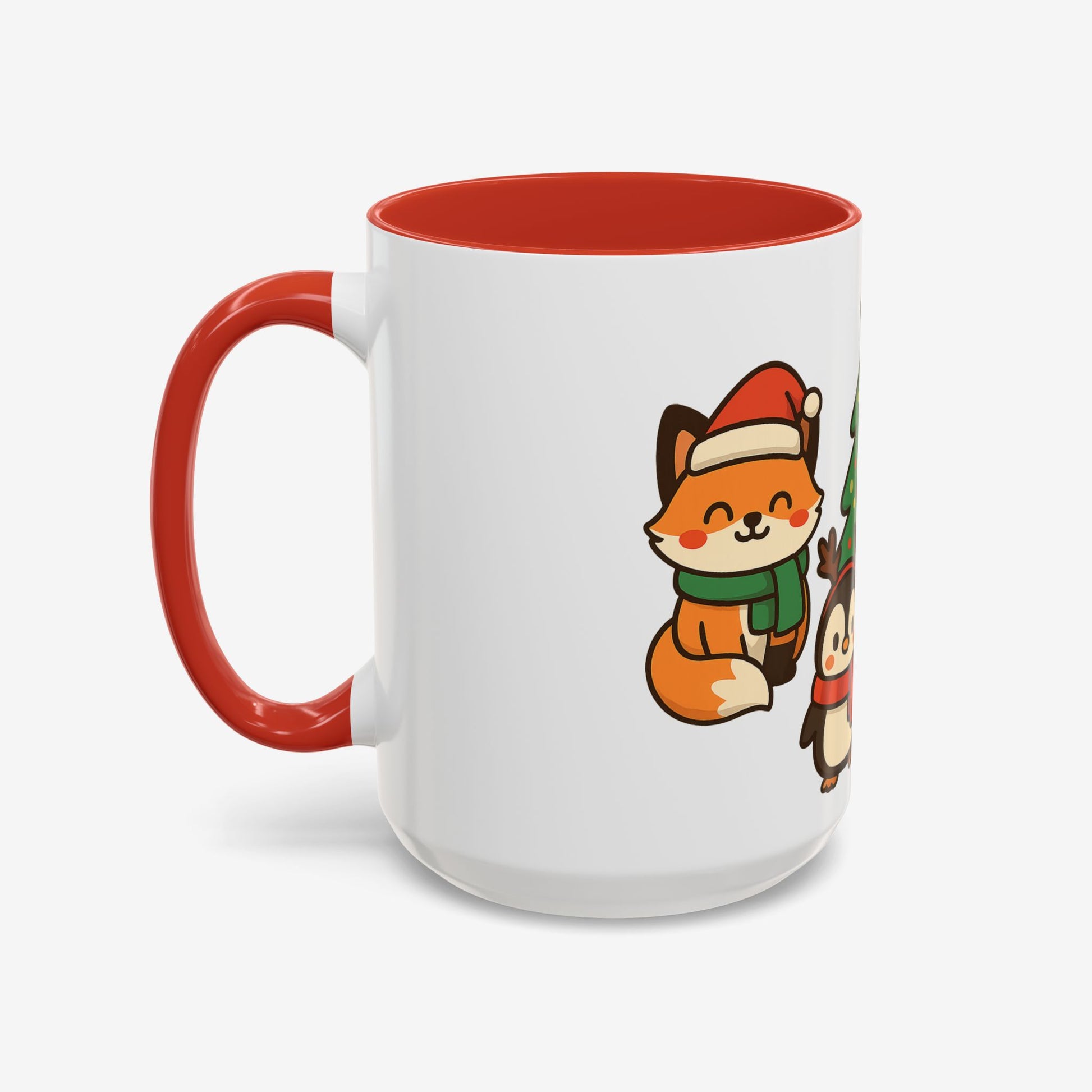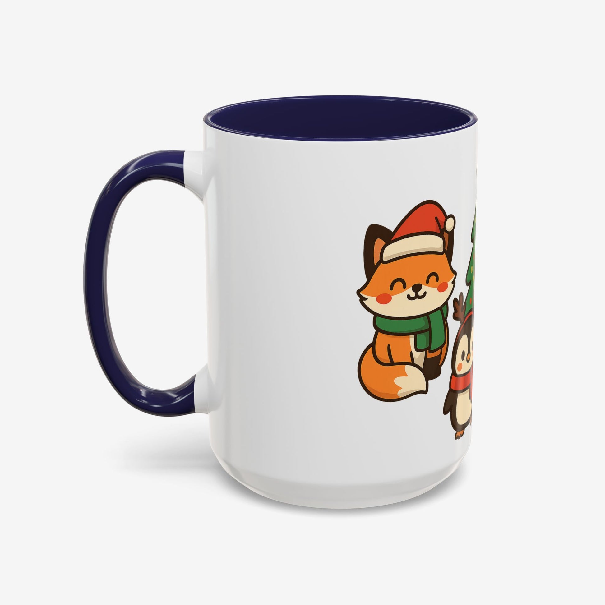 Kerst Dieren Mok — Schattige Pinguïn, Vos & Roodborstje met Kerstboom