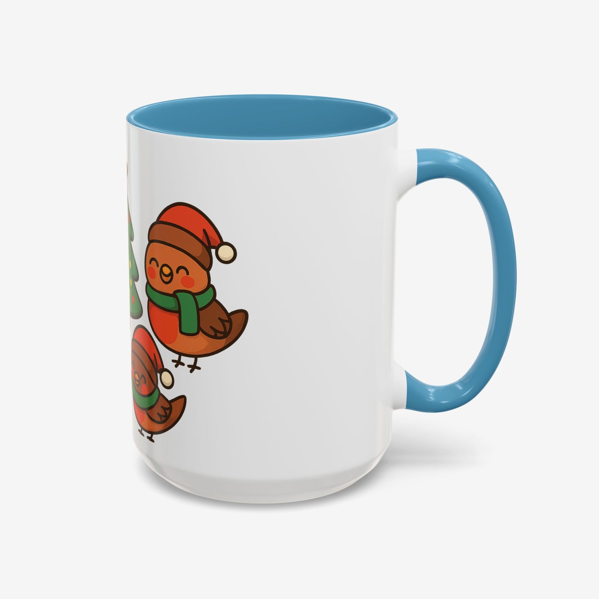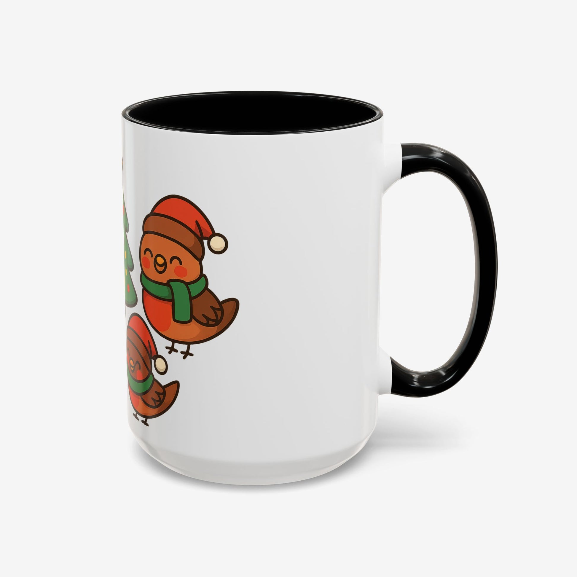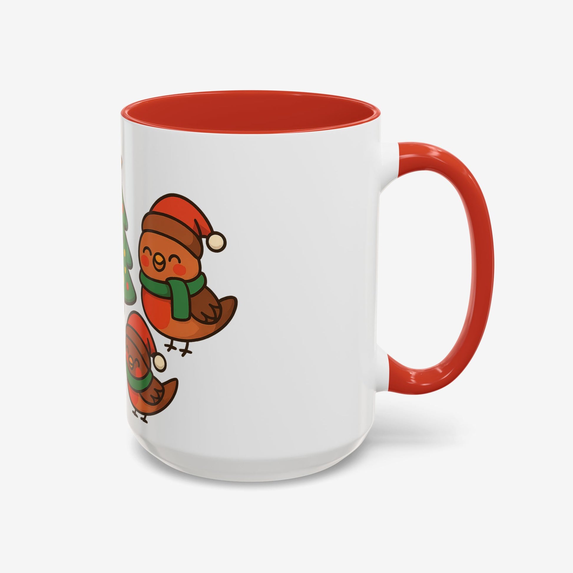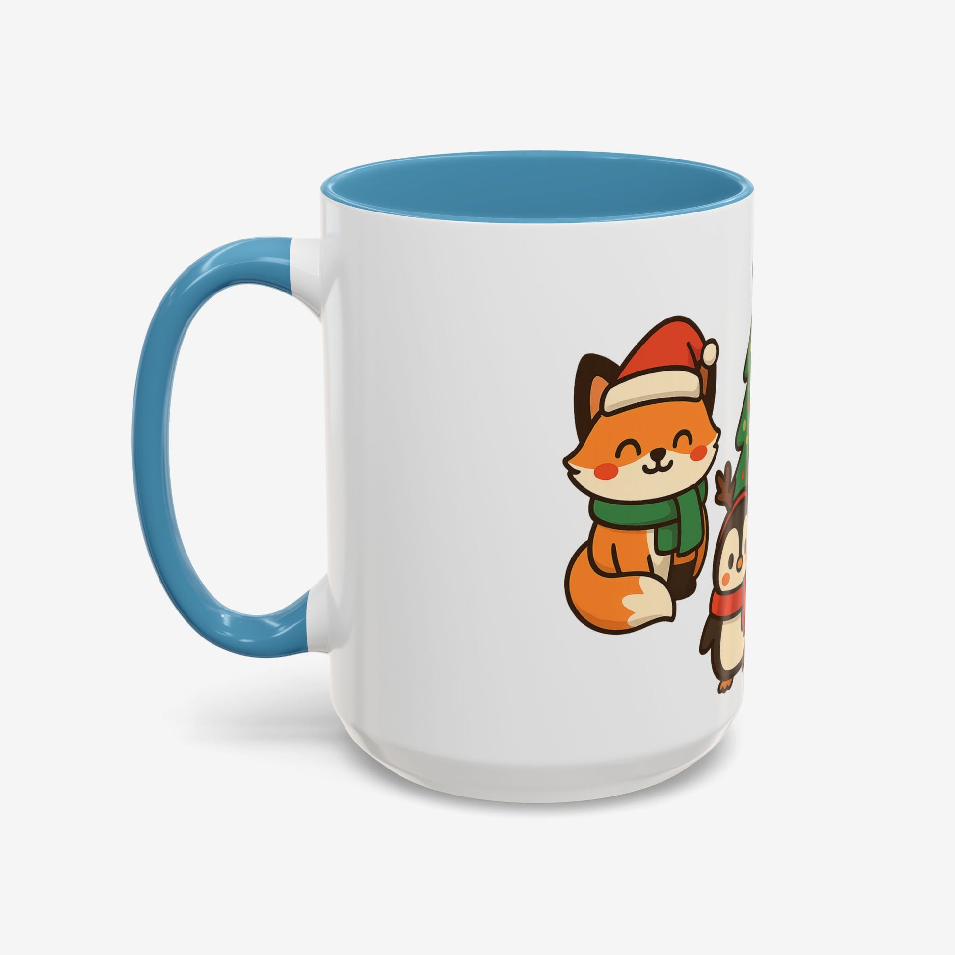 Kerst Dieren Mok — Schattige Pinguïn, Vos & Roodborstje met Kerstboom