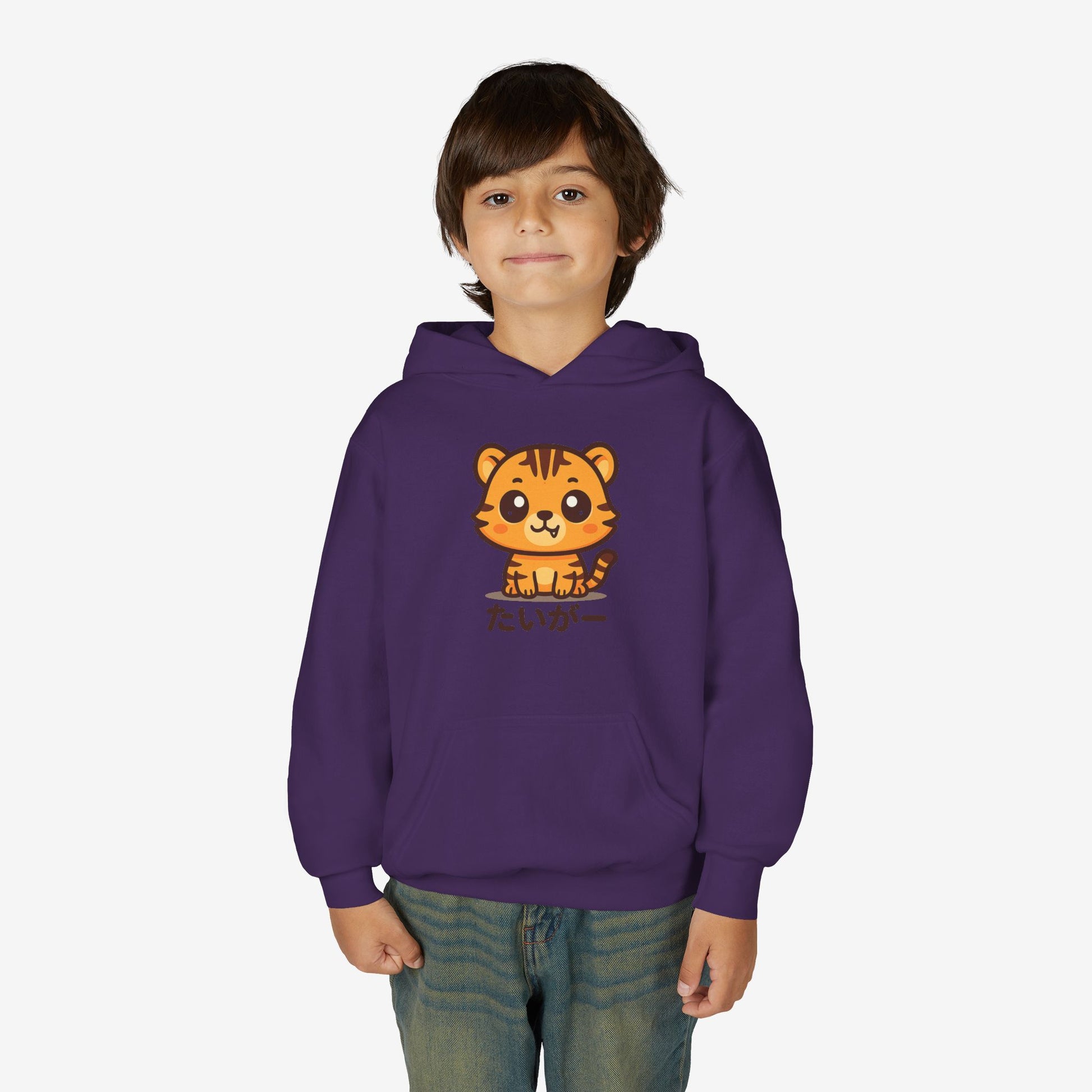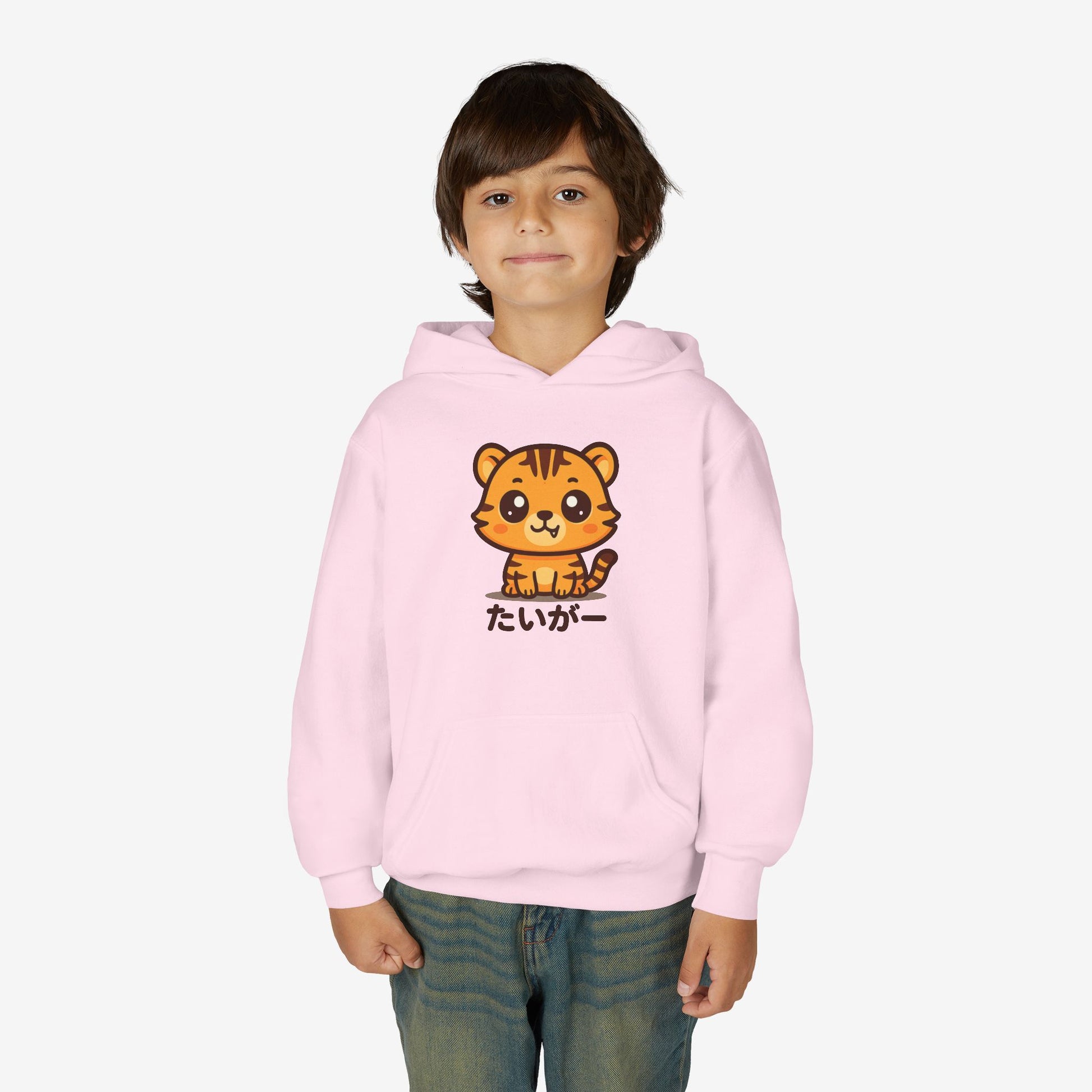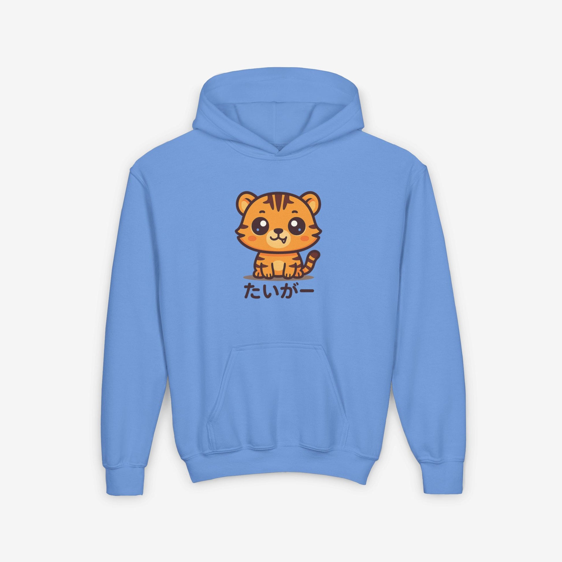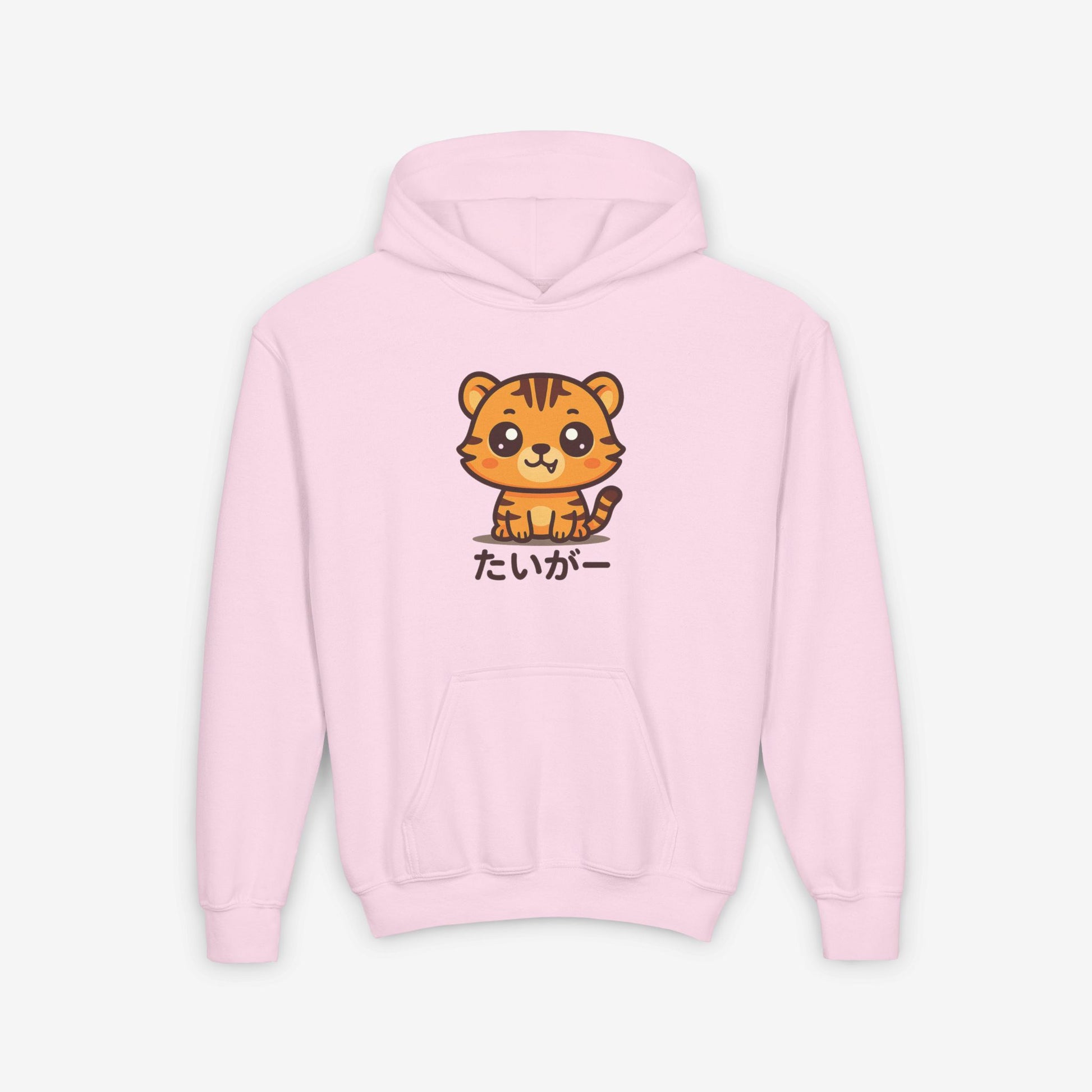 Een zachte, knusse hoodie gemaakt voor kinderen die houden van lieve stijlen en schattige personages. Op de voorkant zit een warme, brede kangoeroezak en een charmante cartoon-tijger met kleine Japanse tekst eronder, wat het ontwerp een speels, licht anime-achtig gevoel geeft. De middeldikke stof voelt stevig maar ademend aan — ideaal om te layeren op frisse ochtenden of om in te ontspannen na school. Subtiele details zoals twill nektape en een ingestikt label tonen zorgvuldige afwerking, terwijl de optie voor kleine borduring op de borst een persoonlijk tintje toevoegt. Deze hoodie past moeiteloos in het dagelijks leven: school, speelafspraakjes of rustige middagen thuis, en de heldere witte achtergrond houdt de illustratie fris en vrolijk.