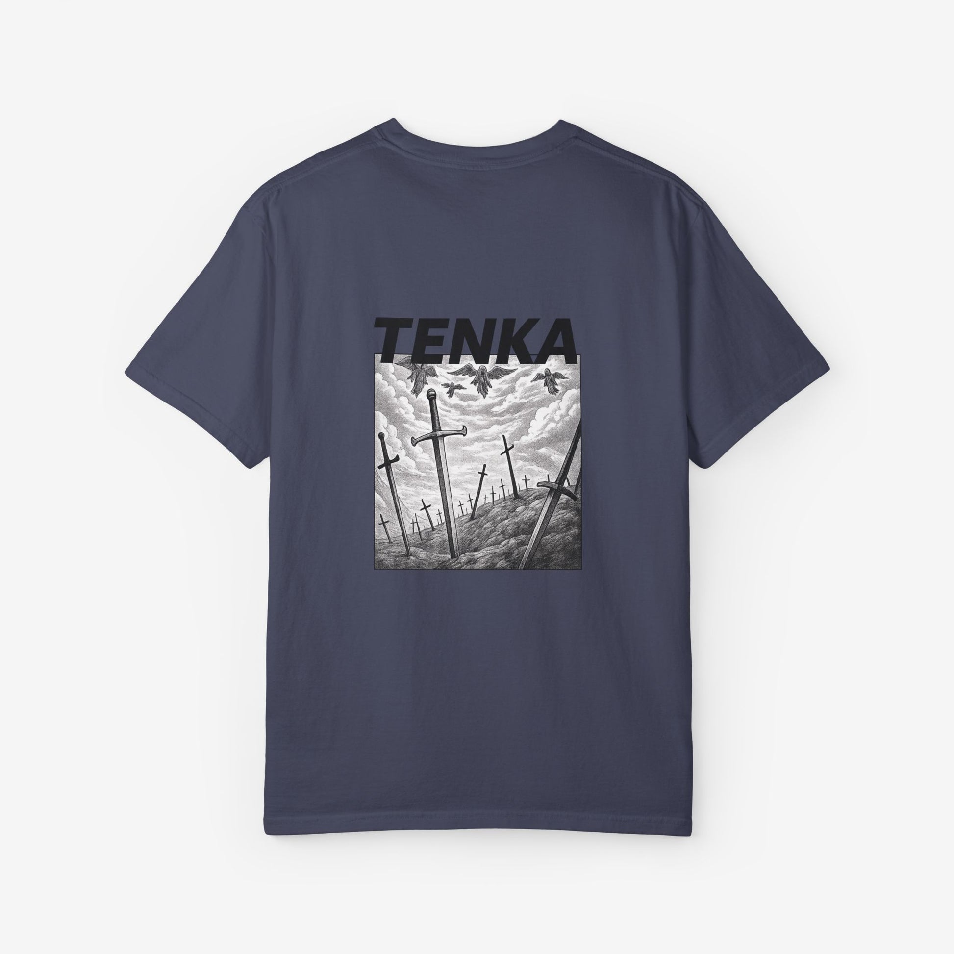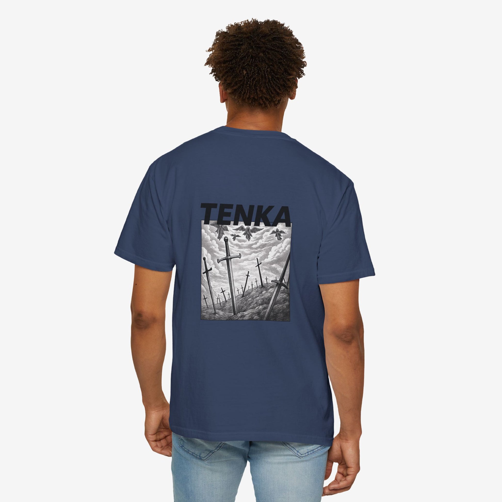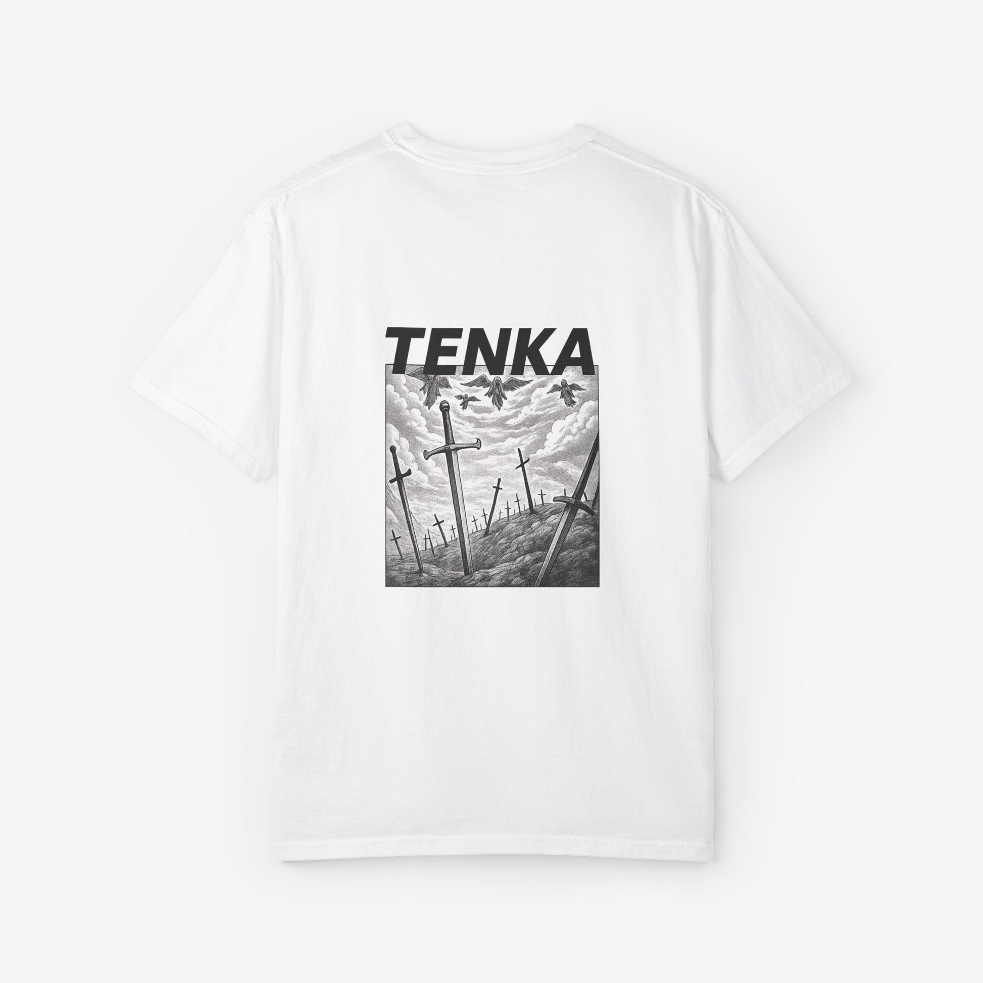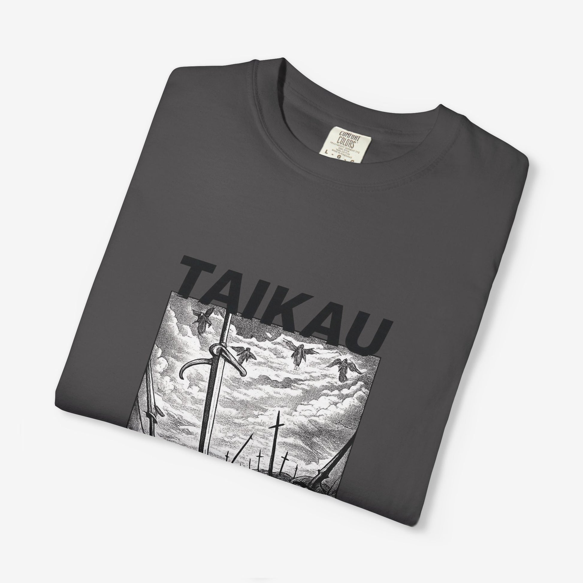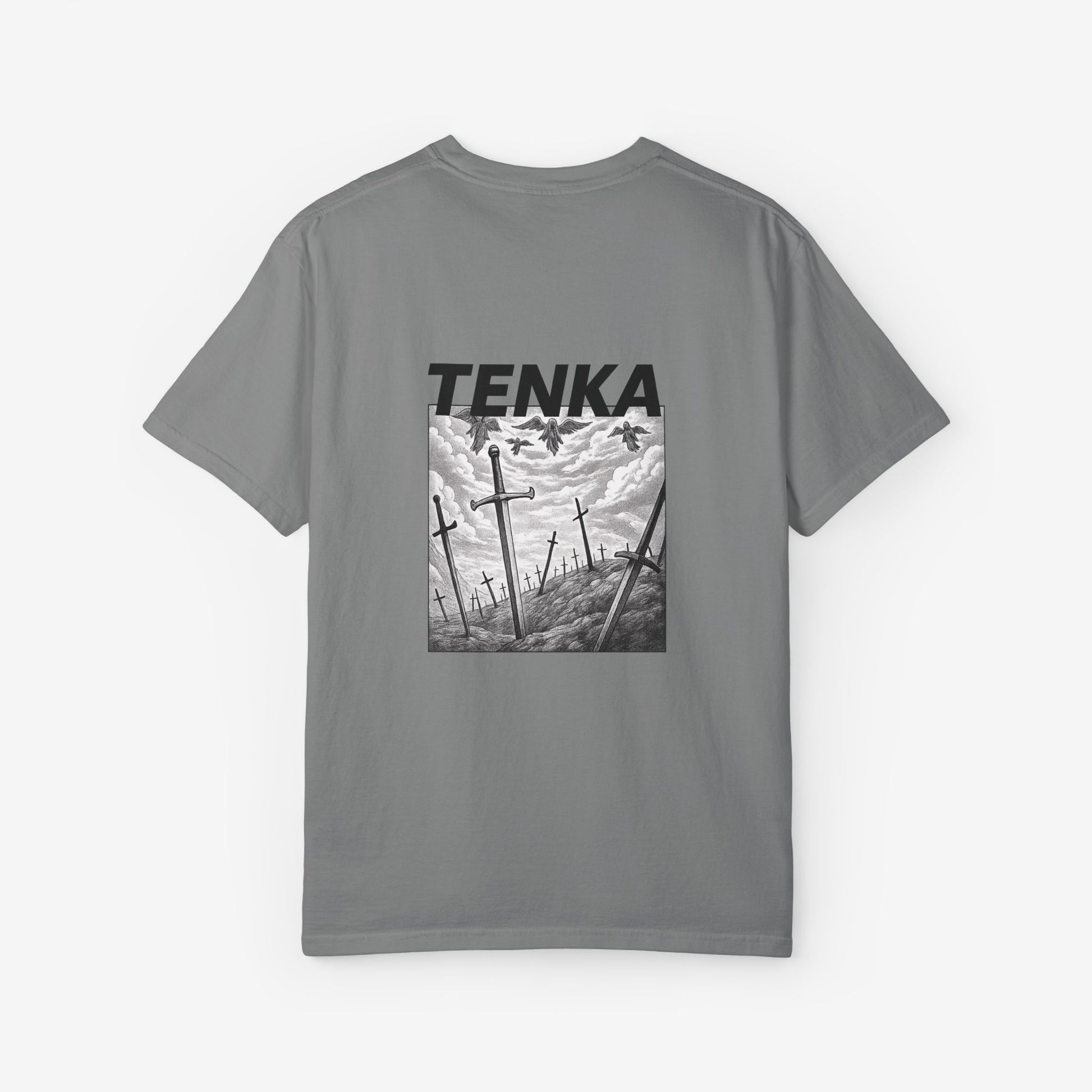 Scherp, lichtgewicht en subtiel gedurfd — dit garment-dyed T-shirt voelt vanaf dag één als een ingedragen favoriet. Het monochrome manga-paneel en de krachtige header roepen beelden op van stormachtige slagvelden en stille nasleep, opvallend zonder luid te zijn. Zachte ringgesponnen katoen en een relaxed fit maken het comfortabel voor lange dagen — of je nu schetst, layeret voor een avondje uit of door stadsstraten dwaalt. De tubular knit-constructie en het ingestikte label houden het silhouet strak en clean. Combineer het met gedragen denim of draag het onder een jas; het heeft een ingetogen, doordachte uitstraling die past bij creatieve geesten die subtiele storytelling verkiezen boven schreeuwerige logo’s.