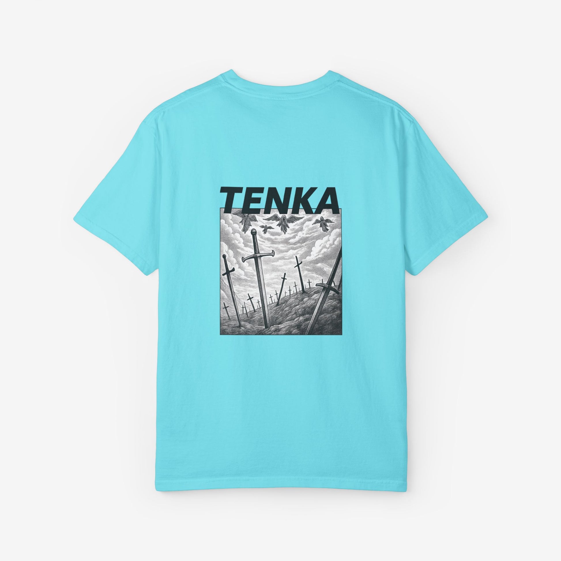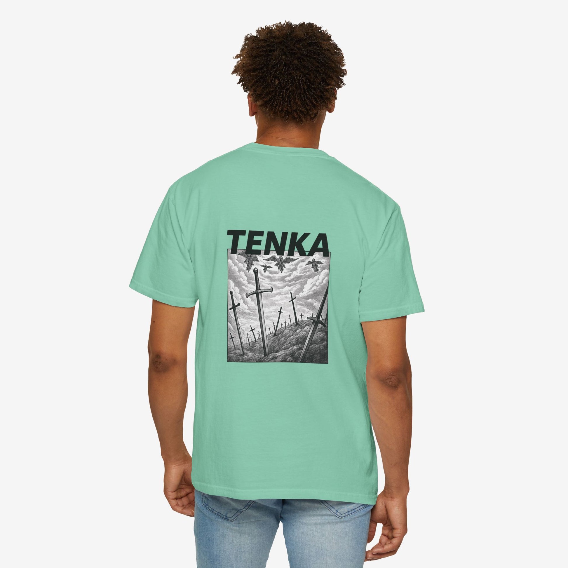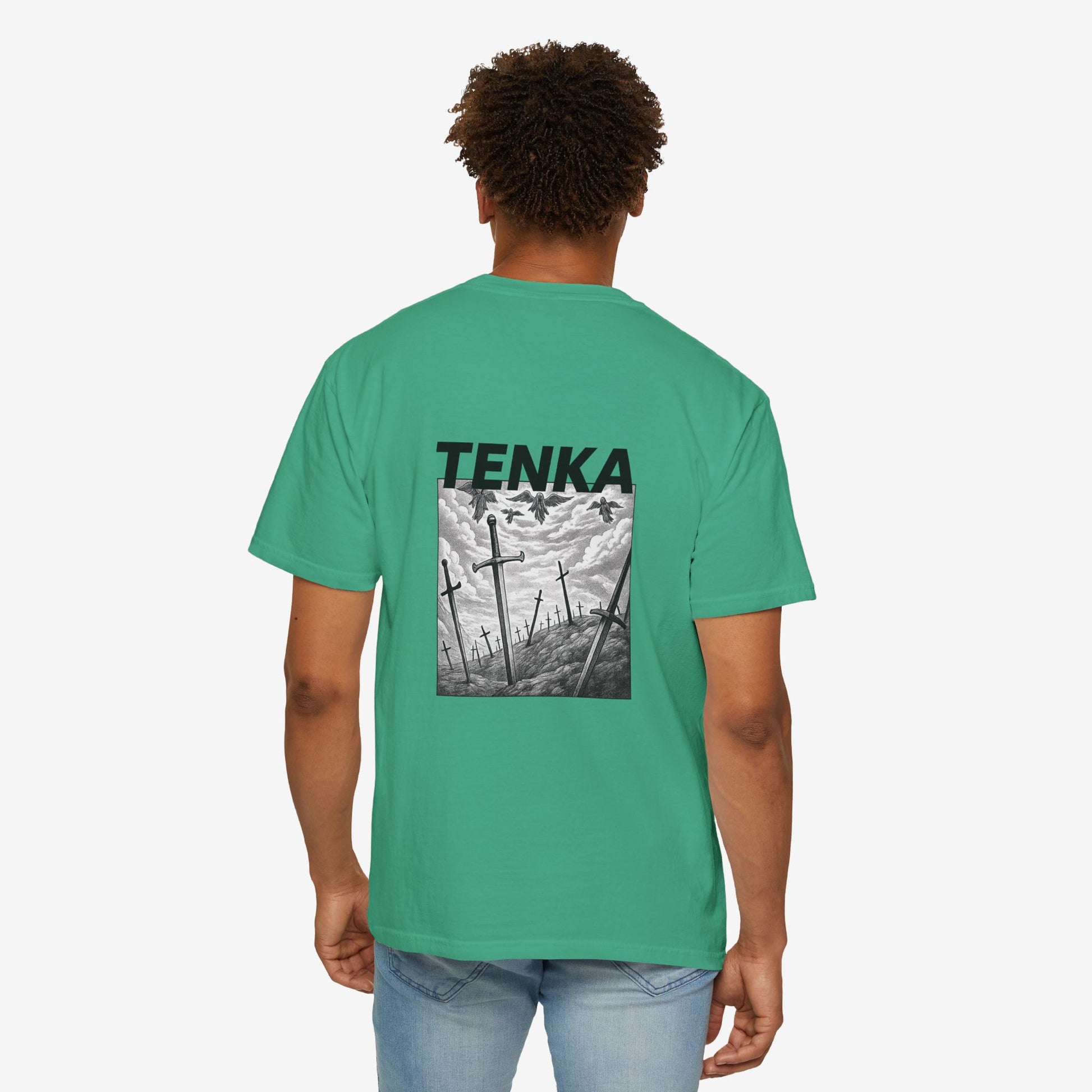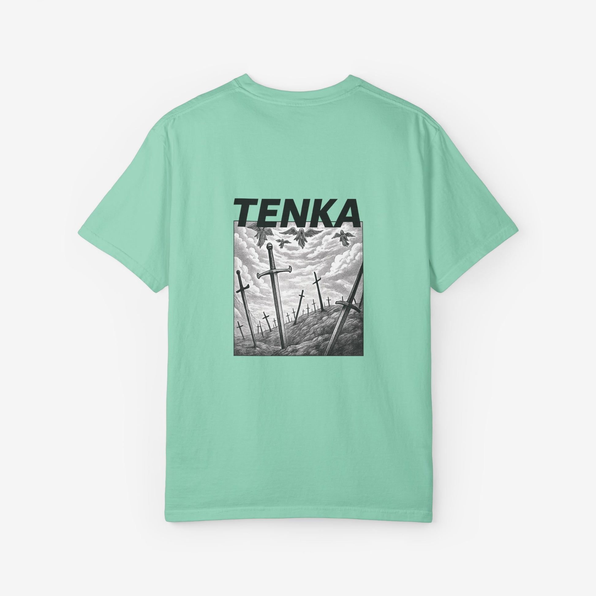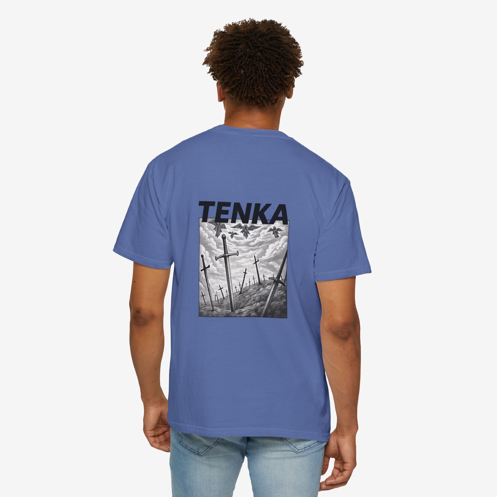 Scherp, lichtgewicht en subtiel gedurfd — dit garment-dyed T-shirt voelt vanaf dag één als een ingedragen favoriet. Het monochrome manga-paneel en de krachtige header roepen beelden op van stormachtige slagvelden en stille nasleep, opvallend zonder luid te zijn. Zachte ringgesponnen katoen en een relaxed fit maken het comfortabel voor lange dagen — of je nu schetst, layeret voor een avondje uit of door stadsstraten dwaalt. De tubular knit-constructie en het ingestikte label houden het silhouet strak en clean. Combineer het met gedragen denim of draag het onder een jas; het heeft een ingetogen, doordachte uitstraling die past bij creatieve geesten die subtiele storytelling verkiezen boven schreeuwerige logo’s.